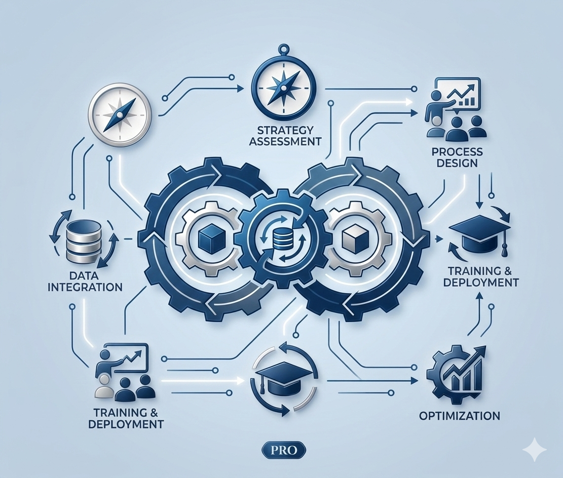 Our team works closely with businesses to understand their current workflows, identify inefficiencies, and implement streamlined processes using modern technologies and industry best practices. By aligning people, processes, and technology, we enable organizations to achieve sustainable growth and operational excellence.